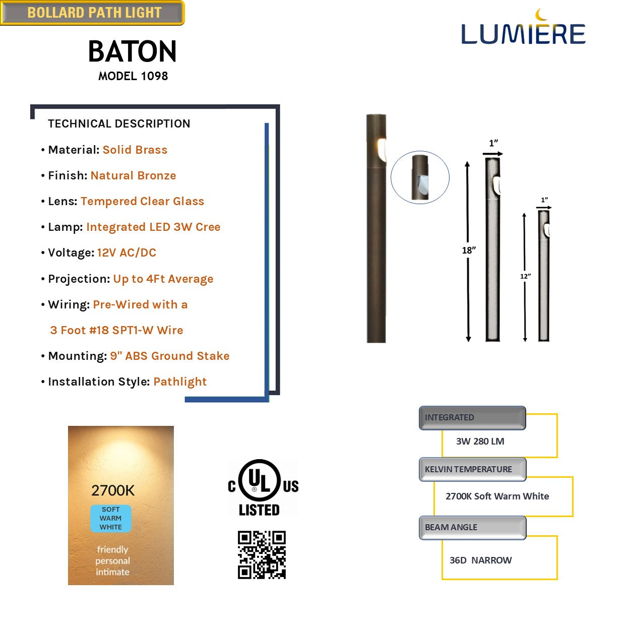 Baton modern path light is designed to be noticed with versatility in mind. It's sleek, thin bollard style is perfect for path or walkways. It is made of high quality cast brass that will complement your landscape setting.
