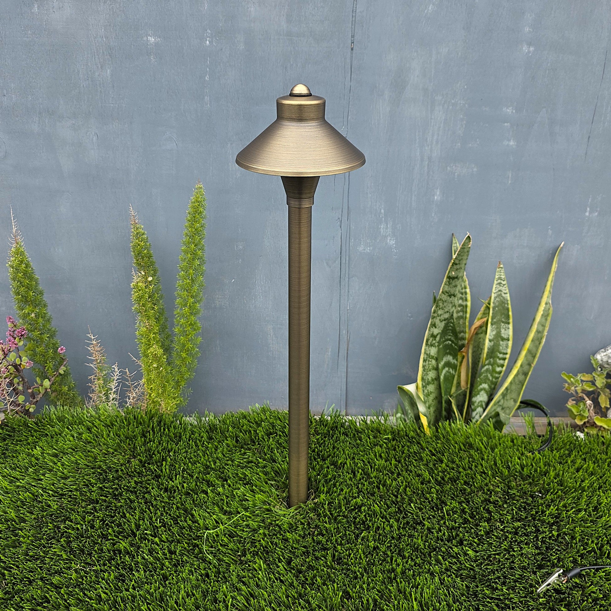 Abajour solid brass pathway light is designed to stand out with versatility in mind. It is ideal for illuminating paths and walkways, adding a touch of elegance to any garden landscape. Constructed with high-quality brass, Abajour is built to withstand the test of time and is resistant to rust and corrosion even in harsh environments. Additionally, it features energy-efficient LED technology that consumes 90% less power compared to traditional incandescent lights.