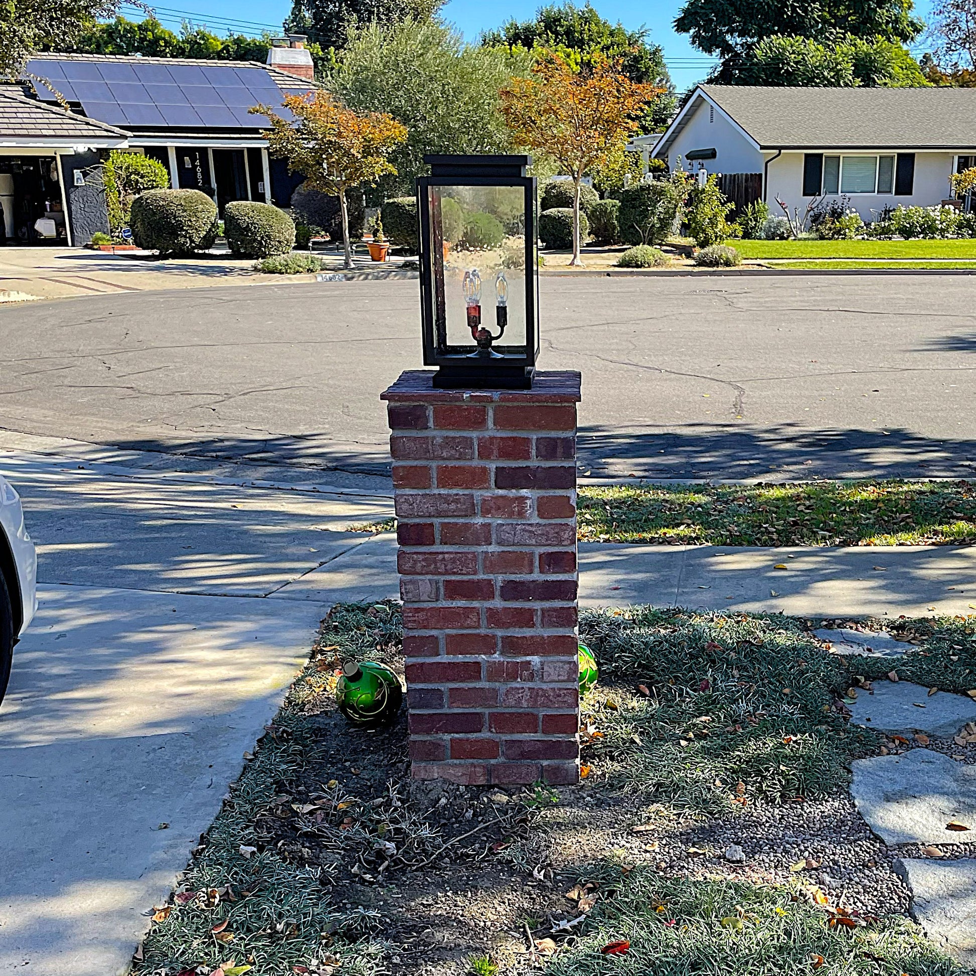 The Marsella Solid Brass Craftsman Pilaster Lantern Light is a meticulously handcrafted masterpiece, proudly made in the USA. Please allow 7-14 days for its careful production.