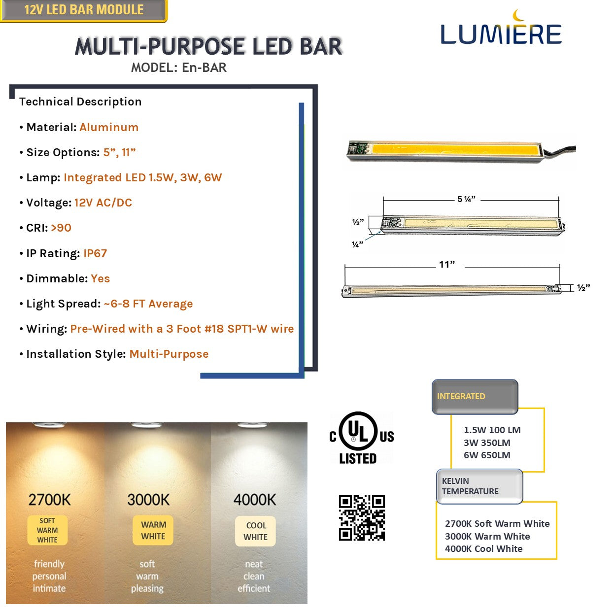 LED Bar Size: 5”(L) x 0.48” x 0.27”